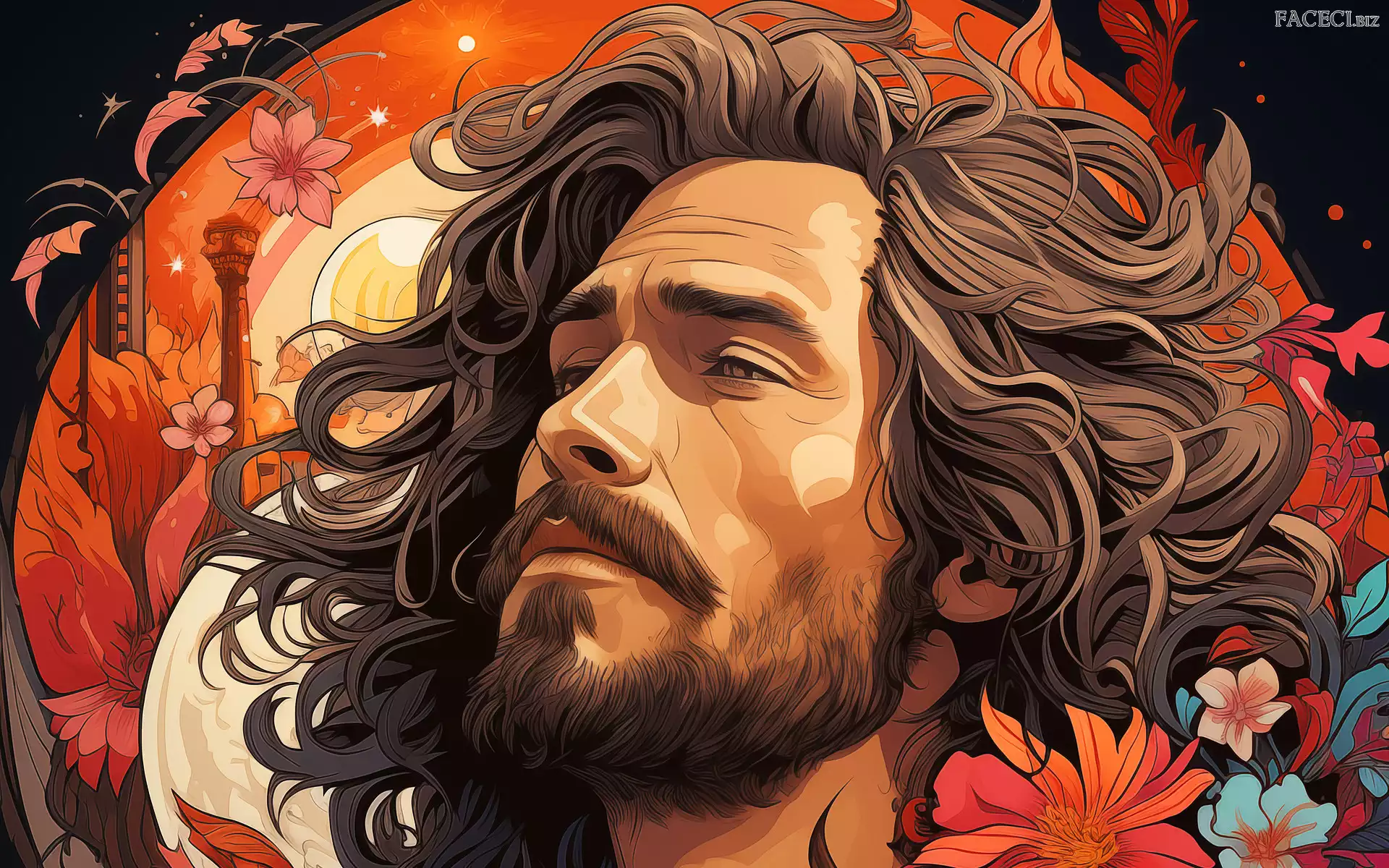 Zarost, Mężczyzna, Kwiaty, Grafika 2D, Długowłosy - faceci.biz